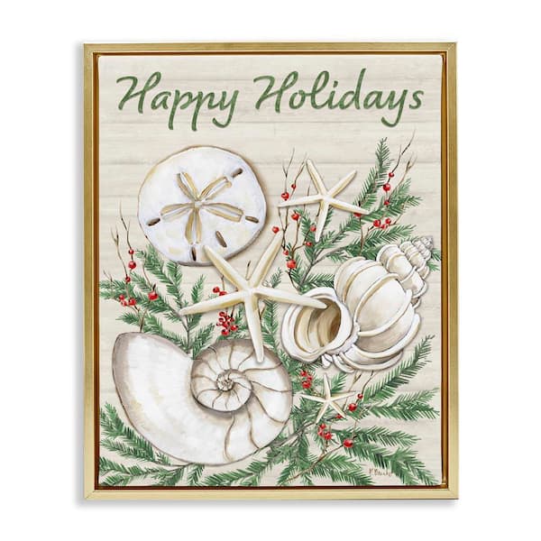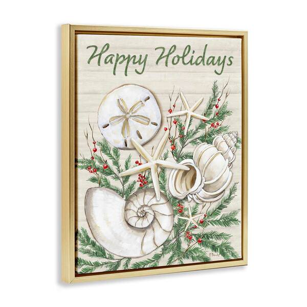 Holiday Seashells and Holly by Paul Brent Gold Floater Frame Typography Graphic Art Print 31 in. x 25 in.