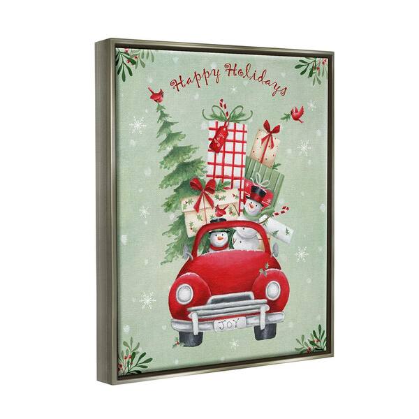 Holiday Stacked Gift Car by Emma Leach 1-Piece Floater Frame Graphic Print Travel Poster Art Print 21 in. x 17 in.