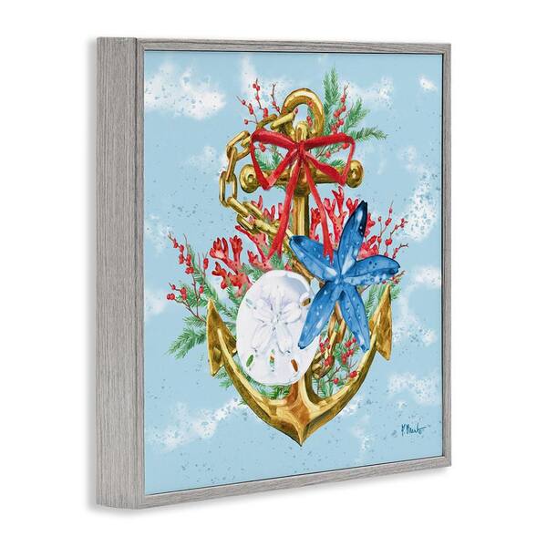 Holiday Submerged Anchor by Paul Brent Gray Framed Coastal Giclee Art Print 24 in. x 24 in.