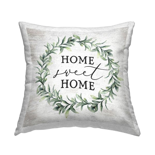 Home Sweet Home Sentiment Green Farmhouse Wreath Green Square Outdoor Throw Pillow