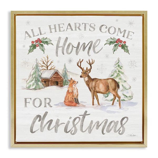Home for Christmas Phrase by Silvia Vassileva 1 Piece Floater Frame Graphic Print Animal Art Print 25 in. x 25 in.