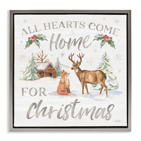 Home for Christmas Phrase by Silvia Vassileva 1 Piece Floater Frame Graphic Print Animal Art Print 25 in. x 25 in.