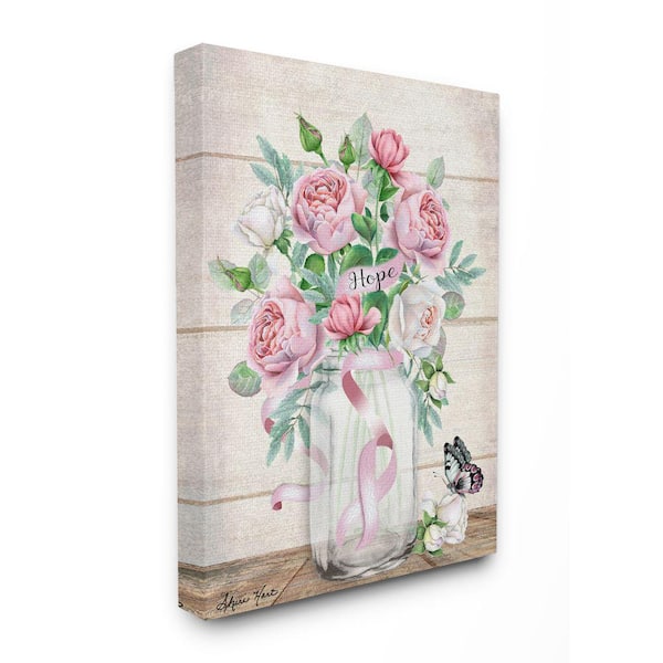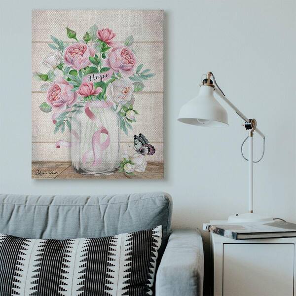 "Hope Flower Jar Butterfly Pink Painting" by Sheri Hart Canvas Home Wall Art 48 in. x 36 in.