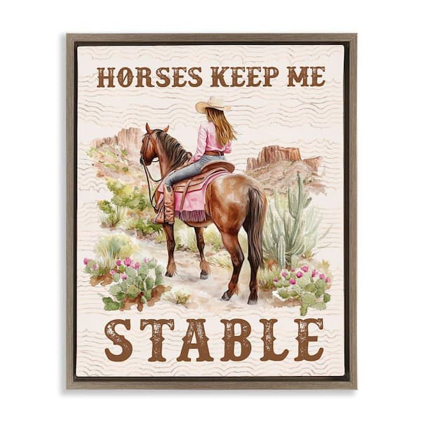 Horses Keep Me Stable by Lettered and Lined Brown Floater Frame People Graphic Art Print 31 in. x 25 in.