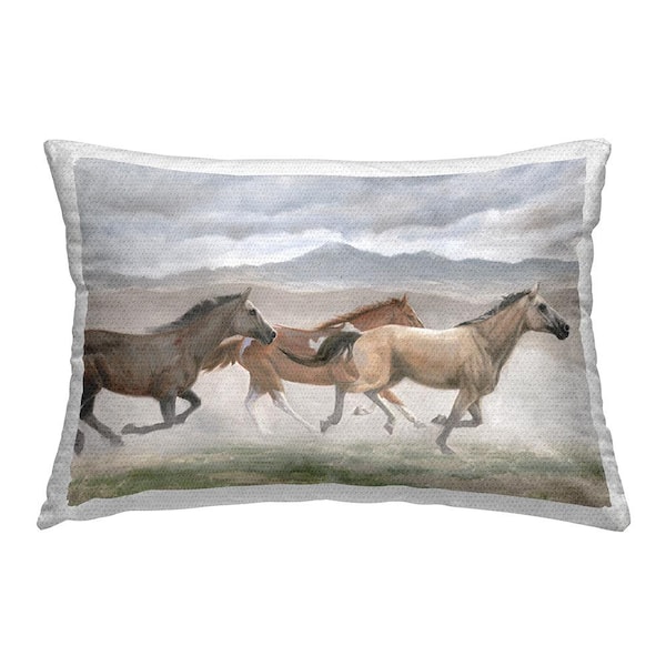 Horses Trotting Scenery Brown Rectangular Outdoor Throw Pillow