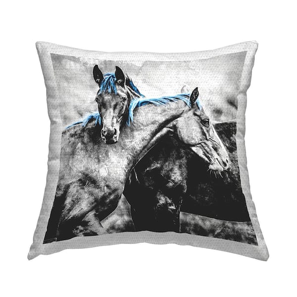 Horses with Blue Manes Grey Square Outdoor Throw Pillow