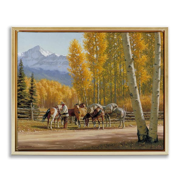 Horses with Fall Foliage by Jimmy Dyer 1 Piece Floater Frame Graphic Print Nature Poster Art Print 21 in. x 17 in.
