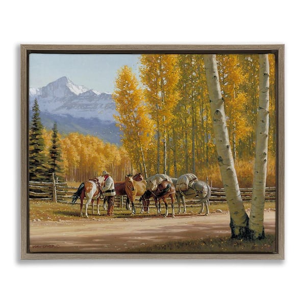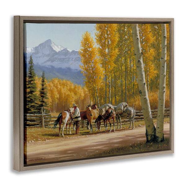 Horses with Fall Foliage by Jimmy Dyer 1 Piece Floater Frame Graphic Print Nature Poster Art Print 31 in. x 25 in.