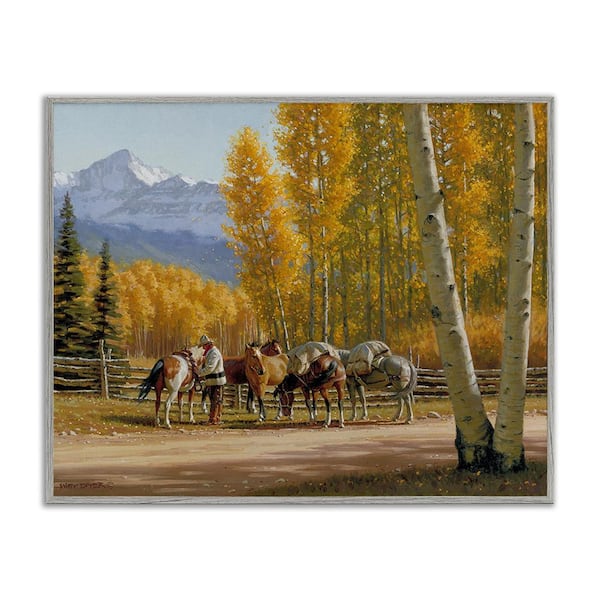 Horses with Fall Foliage by Jimmy Dyer 1 Piece Framed Graphic Print Nature Poster Art Print 30 in. x 24 in.