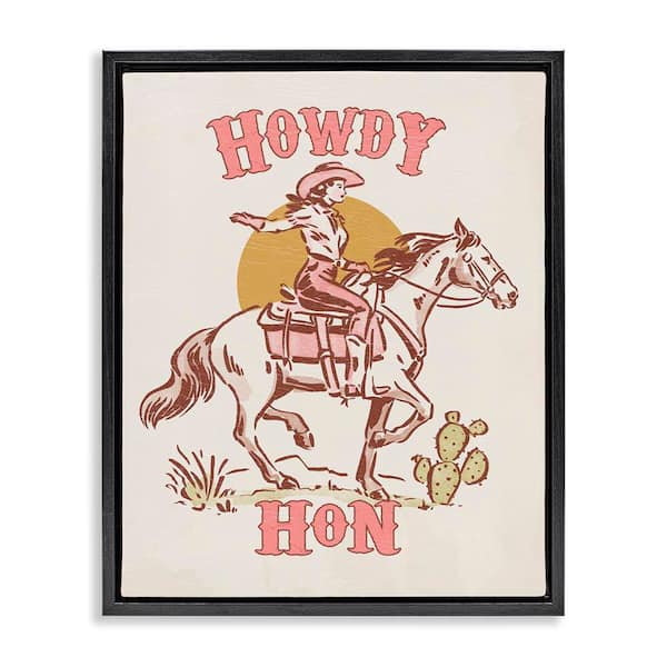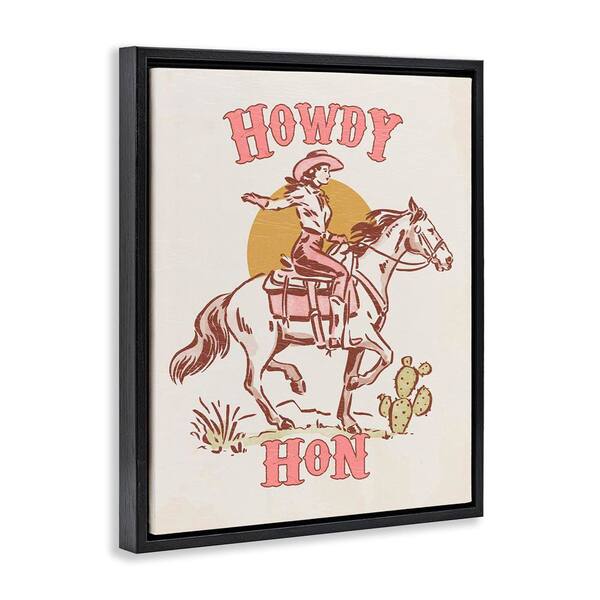 Howdy Hon Cowgirl by Victoria Barnes Black Floater Frame Typography Graphic Art Print 21 in. x 17 in.