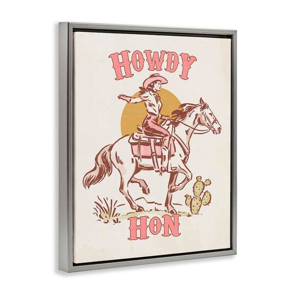 Howdy Hon Cowgirl by Victoria Barnes Gray Floater Frame Typography Graphic Art Print 21 in. x 17 in.
