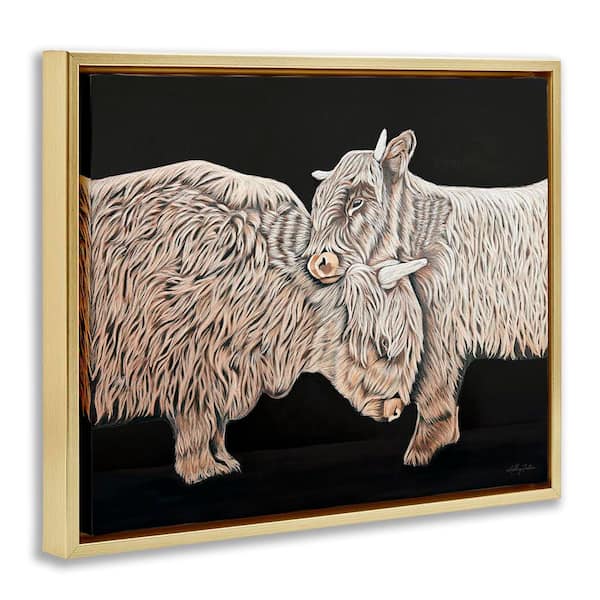 Hugging Cattle on Black by Ashley Justice Gold Floater Frame Animal Graphic Art Print 17 in. x 21 in.