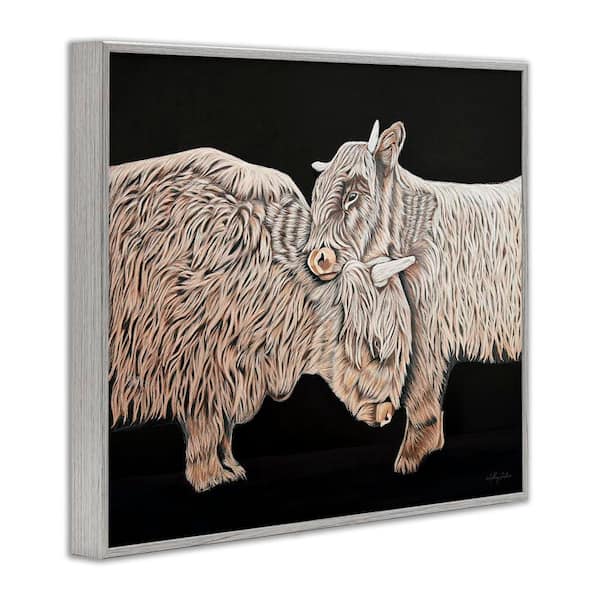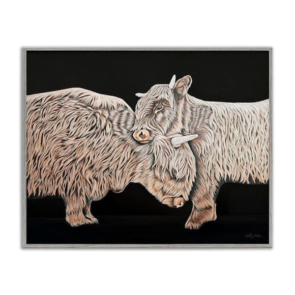 Hugging Cattle on Black by Ashley Justice Gray Framed Animal Giclee Art Print 11 in. x 14 in.