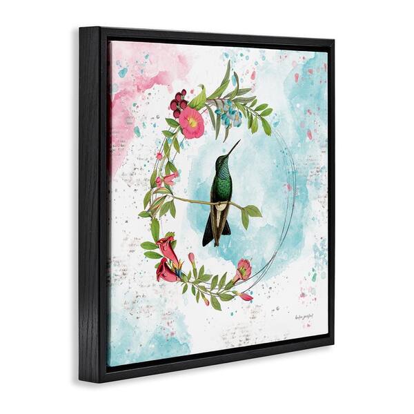Hummingbird within Wreath by Katie Pertiet Black Floater Frame Animal Graphic Art Print 25 in. x 25 in.