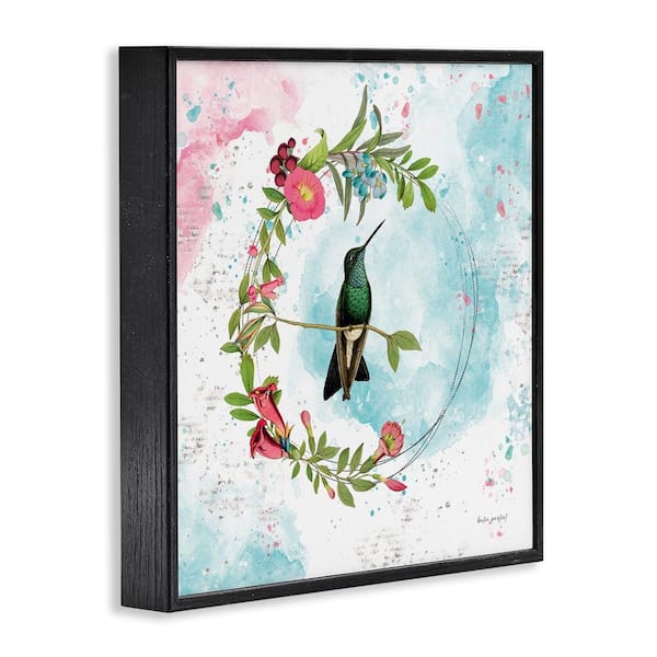 Hummingbird within Wreath by Katie Pertiet Black Framed Animal Giclee Art Print 17 in. x 17 in.