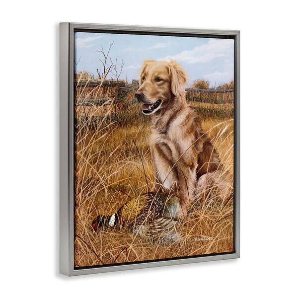 Hunting Dog and Pheasant by Kevin Daniel Gray Floater Frame Animal Graphic Art Print 31 in. x 25 in.