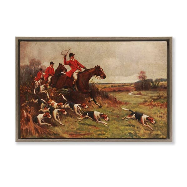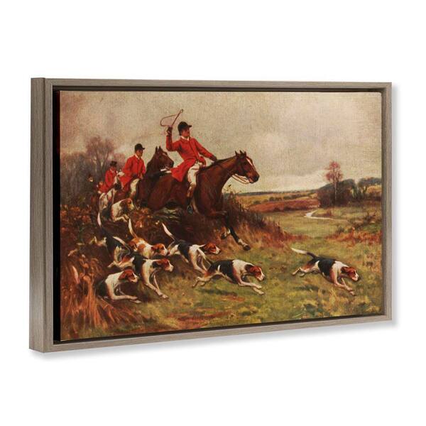 Hunting Dogs in Countryside by Tina Higgins Designs, Inc. Brown Floater Frame People Graphic Art Print 21 in. x 31 in.