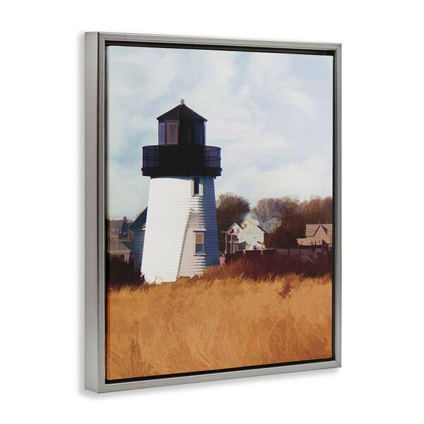 Hyannis Lighthouse Landscape by Graffi tee Studios Gray Floater Frame Nature Graphic Art Print 21 in. x 17 in.