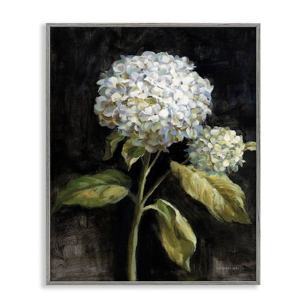 Hydrangea on Black by Danhui Nai Gray Framed Nature Giclee Art Print 20 in. x 16 in.