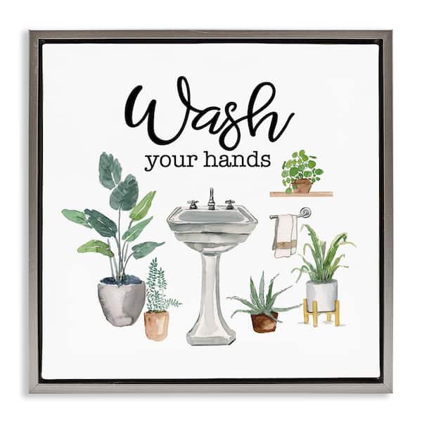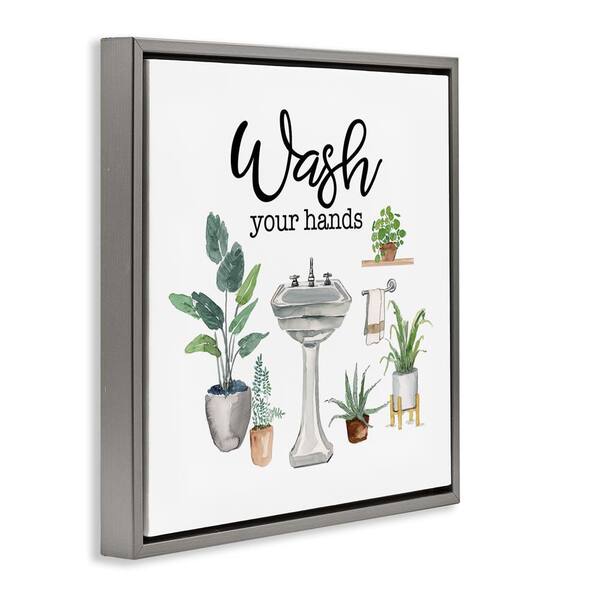 Hygiene Phrase with Plants by Masey St. Studios Gray Floater Frame Typography Graphic Art Print 18 in. x 18 in.