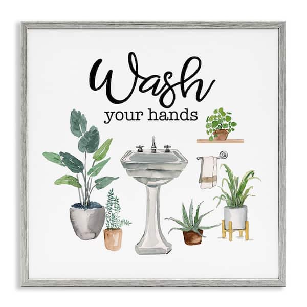 Hygiene Phrase with Plants by Masey St. Studios Gray Framed Typography Giclee Art Print 24 in. x 24 in.