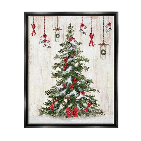 Ice Skates and Sleds on Tree by Emma Leach 1-Piece Floater Frame Graphic Print Nature Poster Art Print 21 in. x 17 in.