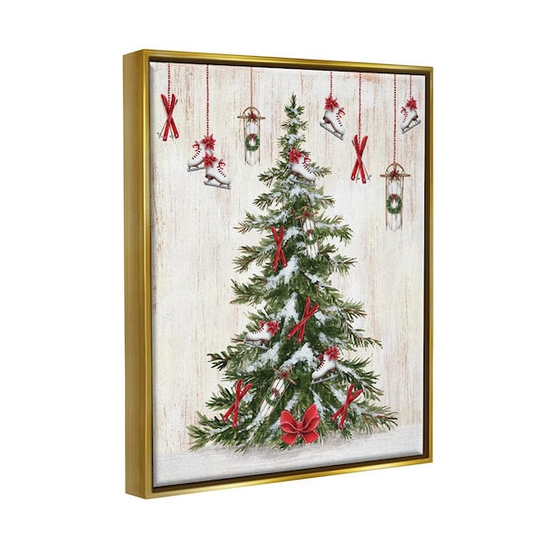 Ice Skates and Sleds on Tree by Emma Leach 1 Piece Floater Frame Graphic Print Nature Poster Art Print 31 in. x 25 in.