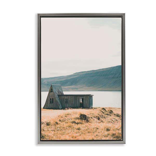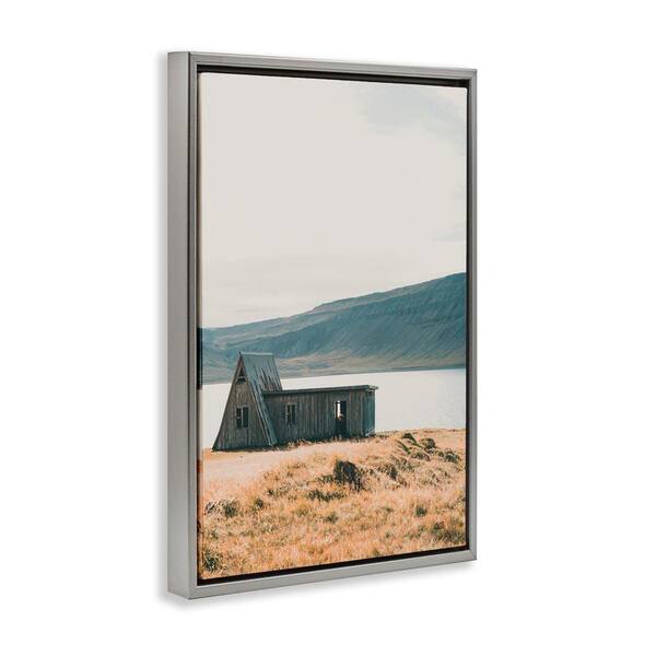 Iceland Shore Cottage by Max Blakesberg Studios Gray Floater Frame Nature Graphic Art Print 31 in. x 21 in.