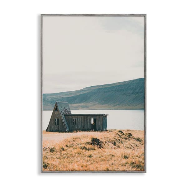 Iceland Shore Cottage by Max Blakesberg Studios Gray Framed Nature Giclee Art Print 18 in. x 12 in.