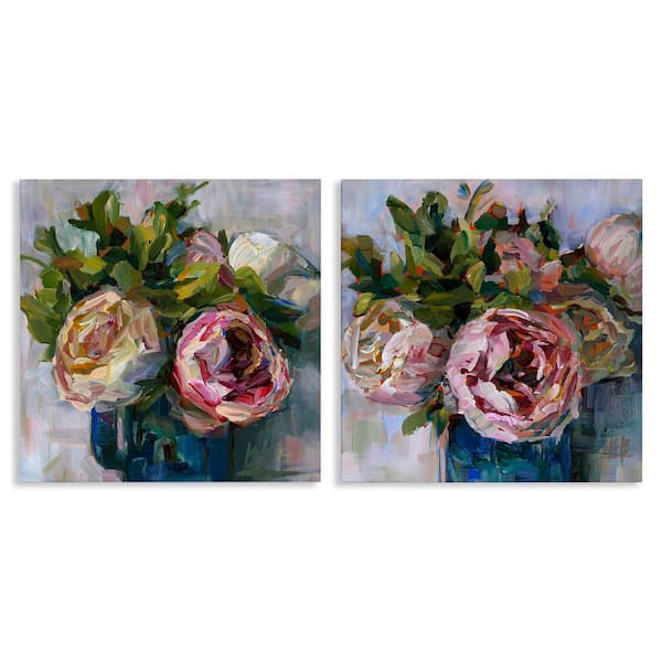 Impasto Cabbage Roses in Vases by Borcherding 2 Pieces Unframed Nature Graphic Art Print 24 in. x 24 in.
