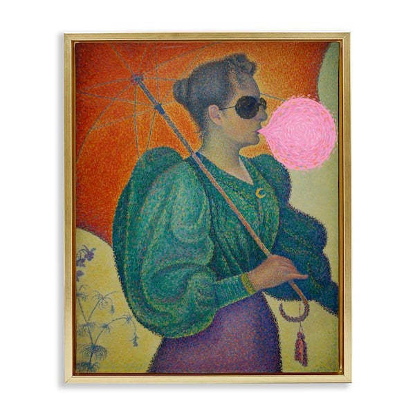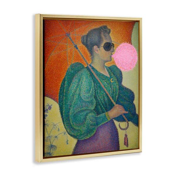 Impressionist Woman and Bubblegum by Daphne Polselli Gold Floater Frame People Graphic Art Print 21 in. x 17 in.