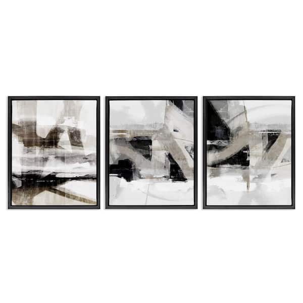 Industrial Streaked Composition by Nina Blue 3 Pieces Black Floater Frame Abstract Graphic Art Print 31 in. x 25 in.
