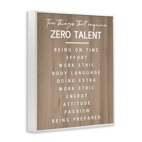 Inspirational Zero Talent by Daphne Polselli White Framed Typography Giclee Art Print 30 in. x 24 in.