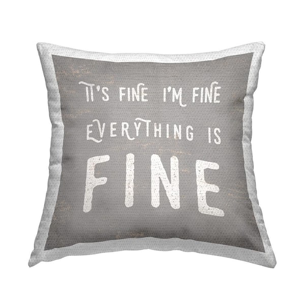 It's Fine Everything's Fine Sassy Sarcastic Phrase Printed Pillow Grey Square Outdoor Throw Pillow
