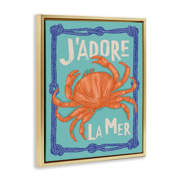 J'adore La Mer Crab by Lisa Perry Whitebutton Gold Floater Frame Animal Graphic Art Print 21 in. x 17 in.