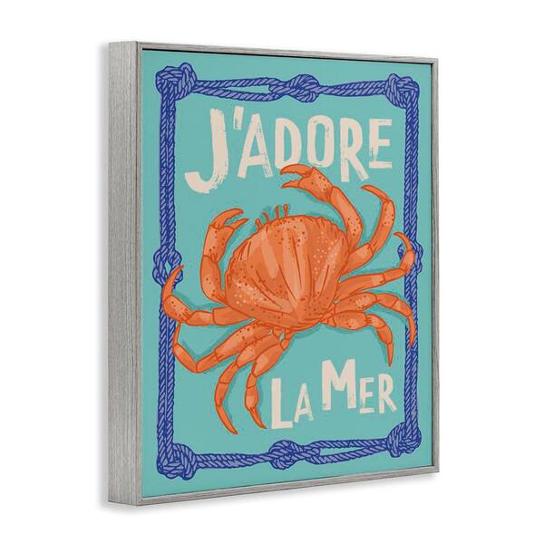 J'adore La Mer Crab by Lisa Perry Whitebutton Gray Framed Animal Giclee Art Print 30 in. x 24 in.