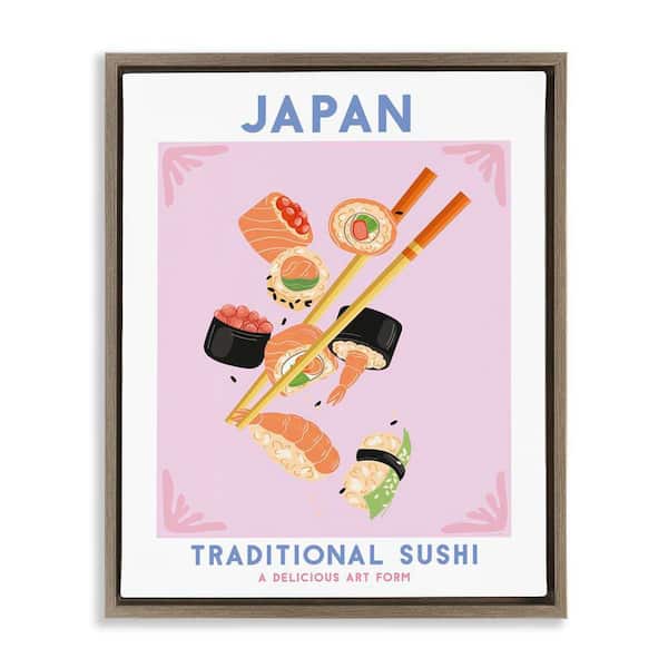 Japanese Traditional Sushi by Omar Escalante Brown Floater Frame Food Graphic Art Print 31 in. x 25 in.