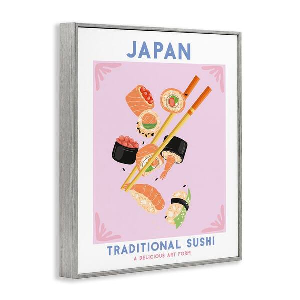 Japanese Traditional Sushi by Omar Escalante Gray Framed Food Giclee Art Print 14 in. x 11 in.
