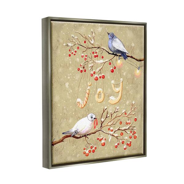Joy Bird on Winter Branches by Verbrugge Watercolor 1-Piece Floater Frame Graphic Print Animal Art Print 21 in. x 17 in.