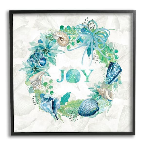 Joy Coastal Shell Wreath by Carol Robinson 1-Piece Framed Graphic Print Nature Poster Art Print 17 in. x 17 in.