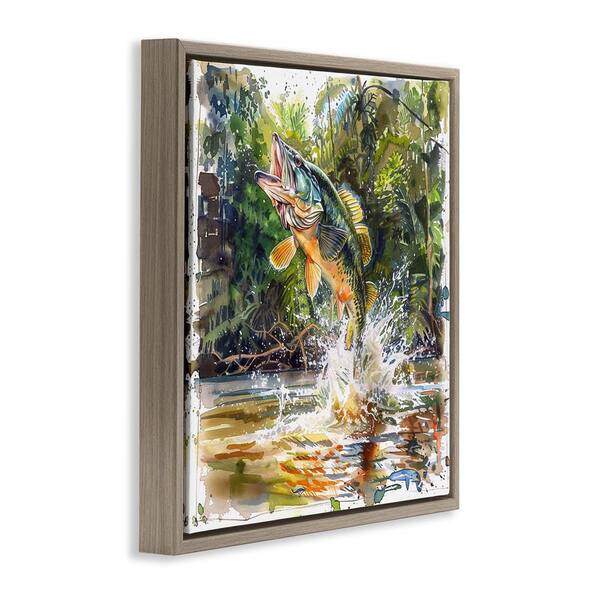 Jumping Bass Fish by LSR Design Studio Brown Floater Frame Animal Graphic Art Print 25 in. x 25 in.