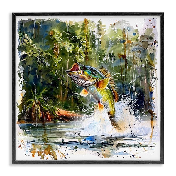 Jumping Bass Splash by LSR Design Studio Black Framed Animal Giclee Art Print 24 in. x 24 in.