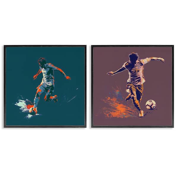 Kicking Soccer Ball Goal by Lazar Studio 2 Pieces Black Framed Sports Giclee Art Print 12 in. x 12 in.