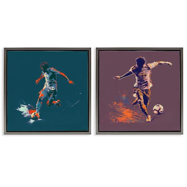 Kicking Soccer Ball Goal by Lazar Studio 2-Pieces Gray Floater Frame Sports Graphic Art Print 25 in. x 25 in.