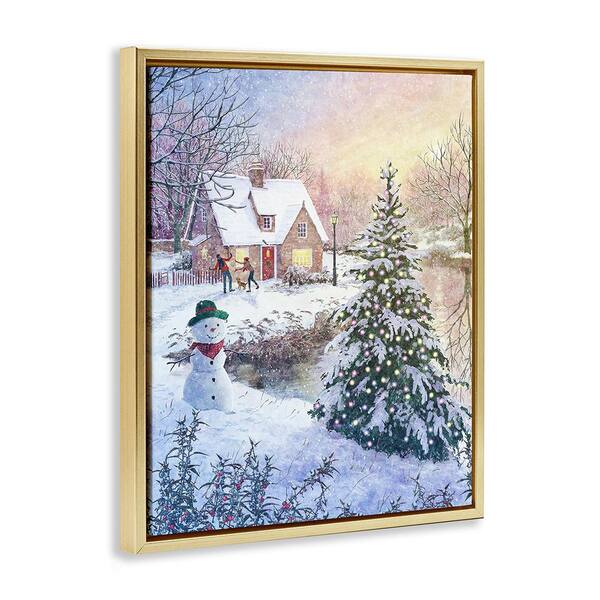 Kids Playing in Snow by Pip Wilson 1 Piece Floater Frame Graphic Print Nature Poster Art Print 31 in. x 25 in.