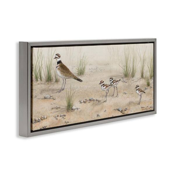 Kildeer Birds Stepping by Valerie Rogers Gray Floater Frame Nature Graphic Art Print 14 in. x 31 in.