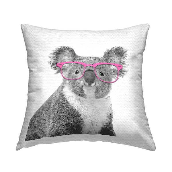 Koala Wearing Pink Glasses Grey Square Outdoor Throw Pillow