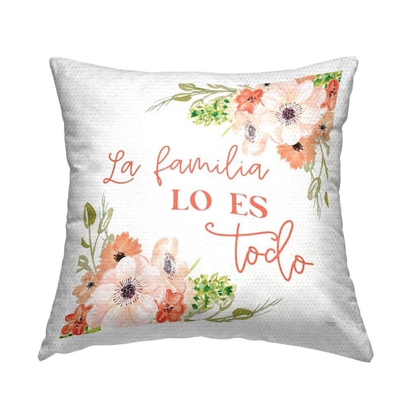 La Familia Lo Es Todo Phrase Pink Square Outdoor Throw Pillow