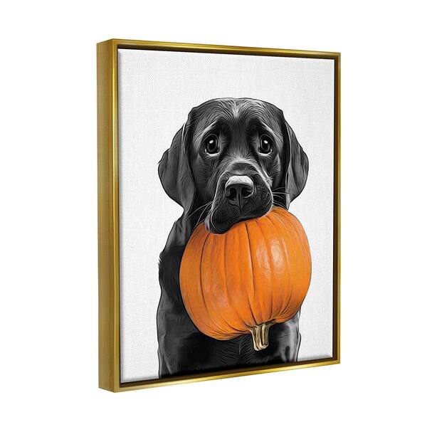 Lab Dog with Pumpkin by Annalisa Latella 1 Piece Floater Frame Graphic Print Animal Poster Art Print 21 in. x 17 in.
