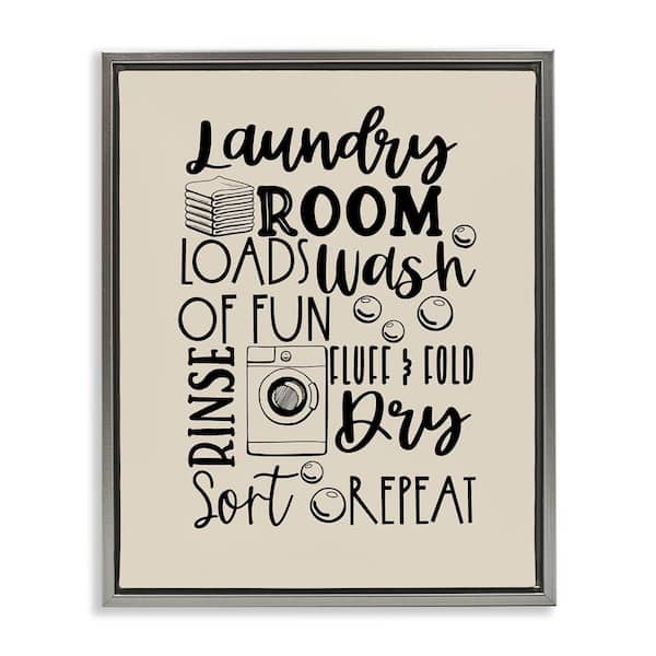 Laundry Phrases Mixed Typography by Daniela Santiago Gray Floater Frame Typography Graphic Art Print 31 in. x 25 in.